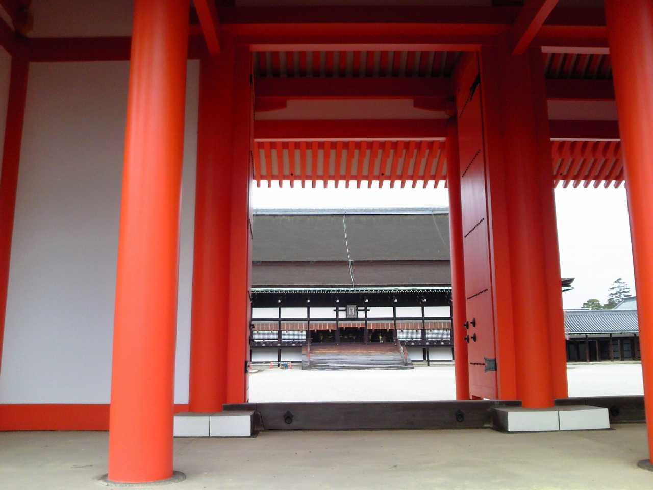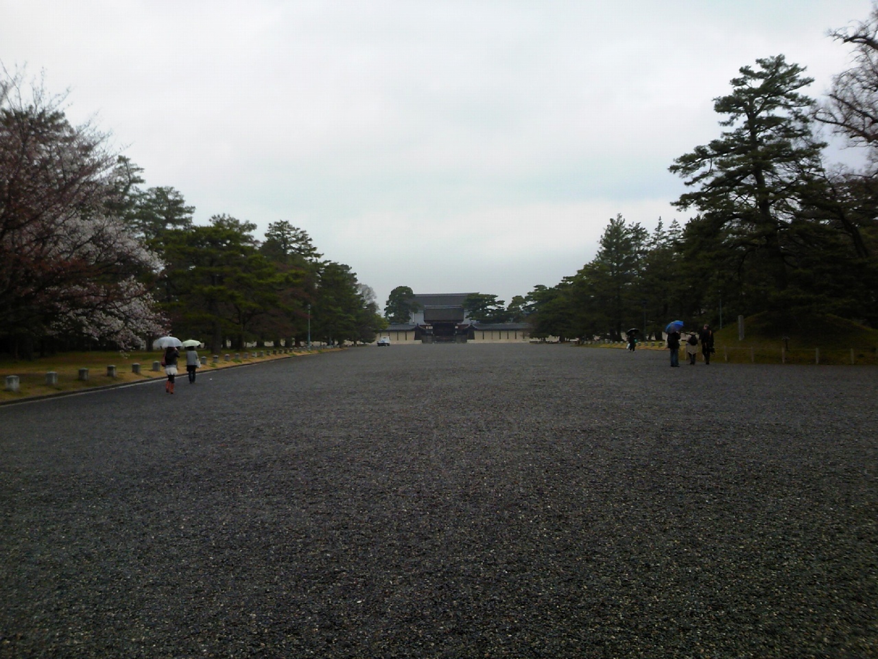 遠くの方にちっさく見えてるのは建礼門。天皇と、天皇と同等の地位を持つ人しか使用できない門らしい。勿論閉鎖されています。ヨミみたいな底辺は近寄るのもおそるおそるです。